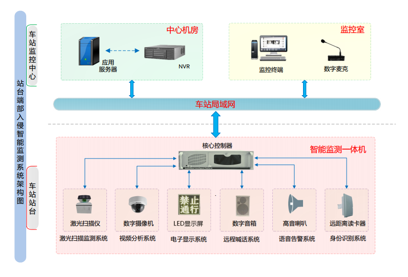监控中心:一般设置在车站中心机房,主要实现系统报警、设备监控管理、设备信息管理、存储管理、用户管理、时间同步等功能