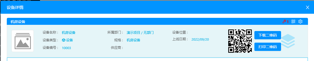 HawkEye设备数字化管理平台二维码功能包含单台设备的基础信息,如设备名称,设备规格型号,所属部门,位置,负责人,采购人,供应商,等等。也包含各个管理单元的基础设备数据,如设备类别,各类别的数量,等等。